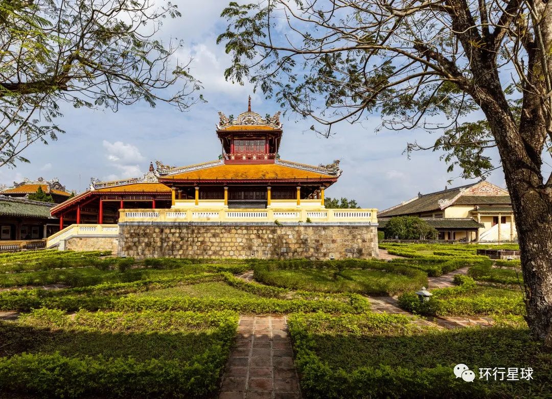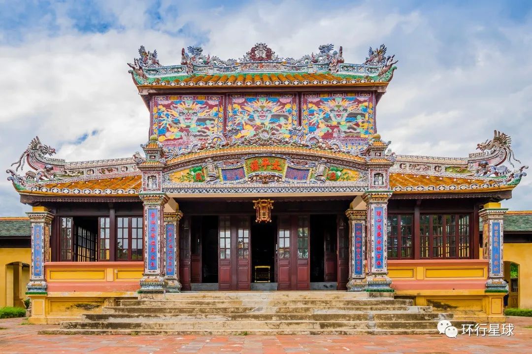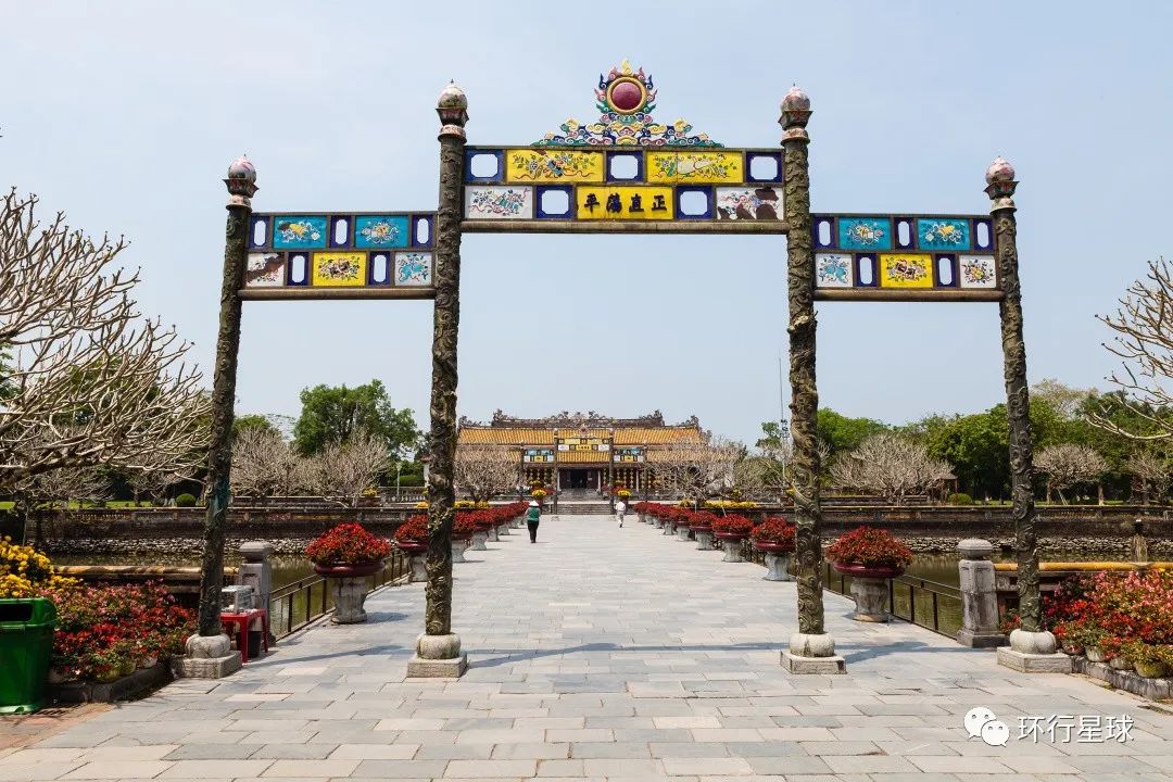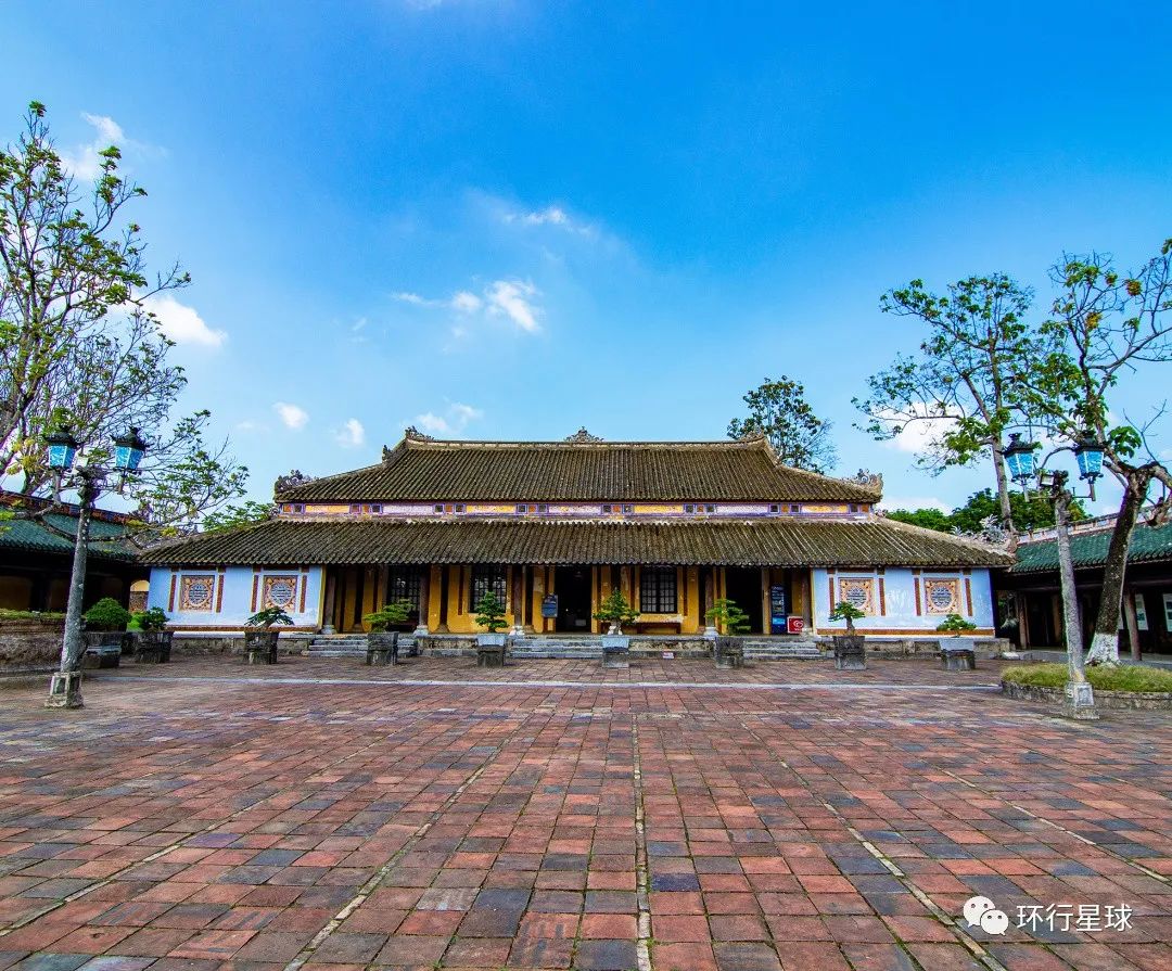 穿过中道桥,就是太和殿,太和殿是顺化皇城中规模最大的建筑,是皇帝登基、庆祝生日等重大典礼及大的节日庆典举办之处。顺化皇城太和殿