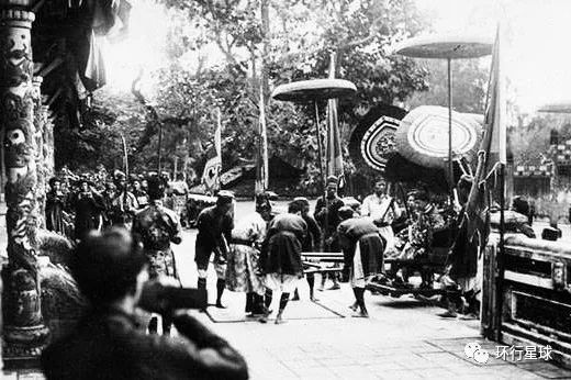 1920年代,是越南阮朝的法属时期,这一时期的阮朝皇室已经沦为小朝廷,所以皇帝平时政务也不多,但是各种典礼照常举行,而对这个古老东方皇室颇感兴趣的法国人,会经常拍摄一些皇室的照片,因此我们现在还可以看到那个时期皇宫内的一些活动。1920年代,皇帝来到太和殿参加典礼