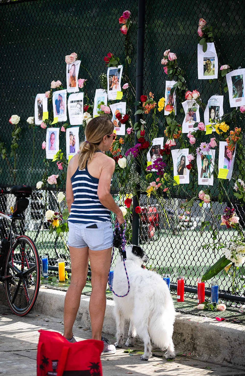 当地时间2021年6月26日,在美国佛罗里达州迈阿密-戴德县,一名女子在贴满失联人信息的围栏前驻足。