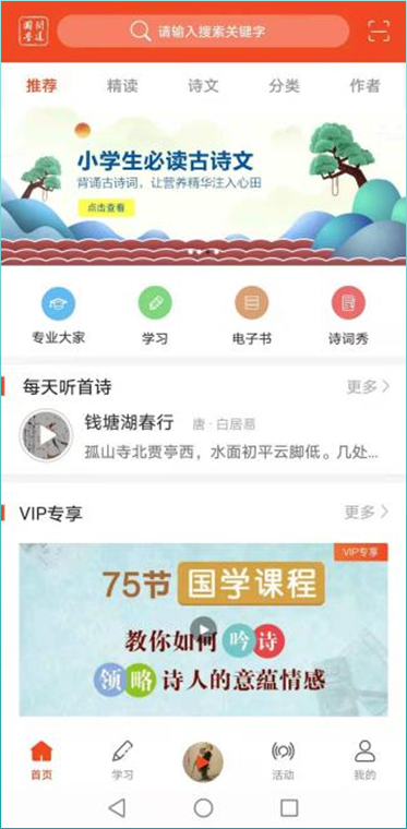 除此之外,《问道国学》APP还新引入了古诗词的传统吟诵内容,新制作了《幼儿趣味古诗动画》《动物乐园之学古诗》《国学经典之历史故事》等动漫、音视频内容,使得《问道国学》雅俗共享、老少皆宜。