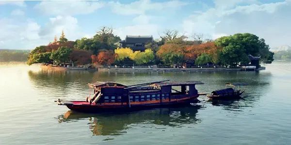 湖心岛上,烟雨楼前,一艘中型画舫静静停靠,这就是中共一大纪念船(又称红船)。