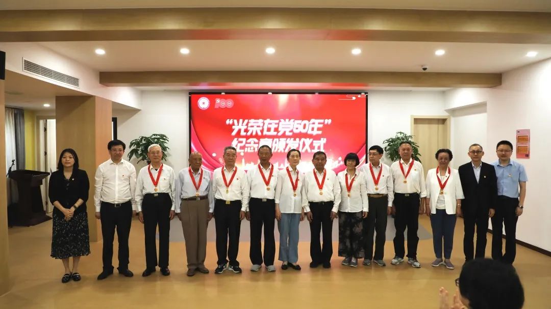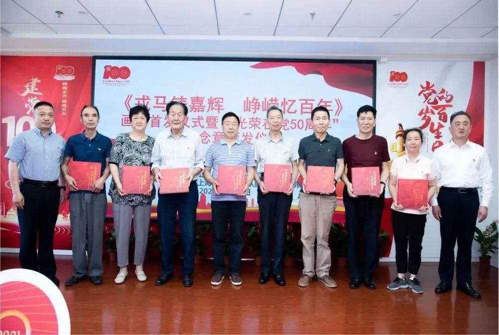 徐汇区军休中心举行“光荣在党50年”纪念章颁发仪式。市退役军人事务局党组成员、副局长屈新平,区委常委、副区长俞林伟将一枚枚印有鲜红党旗的纪念章颁挂在10名党龄在50年以上的军休干部代表胸前,向他们为革命建设和改革事业作出贡献表示崇高的敬意。