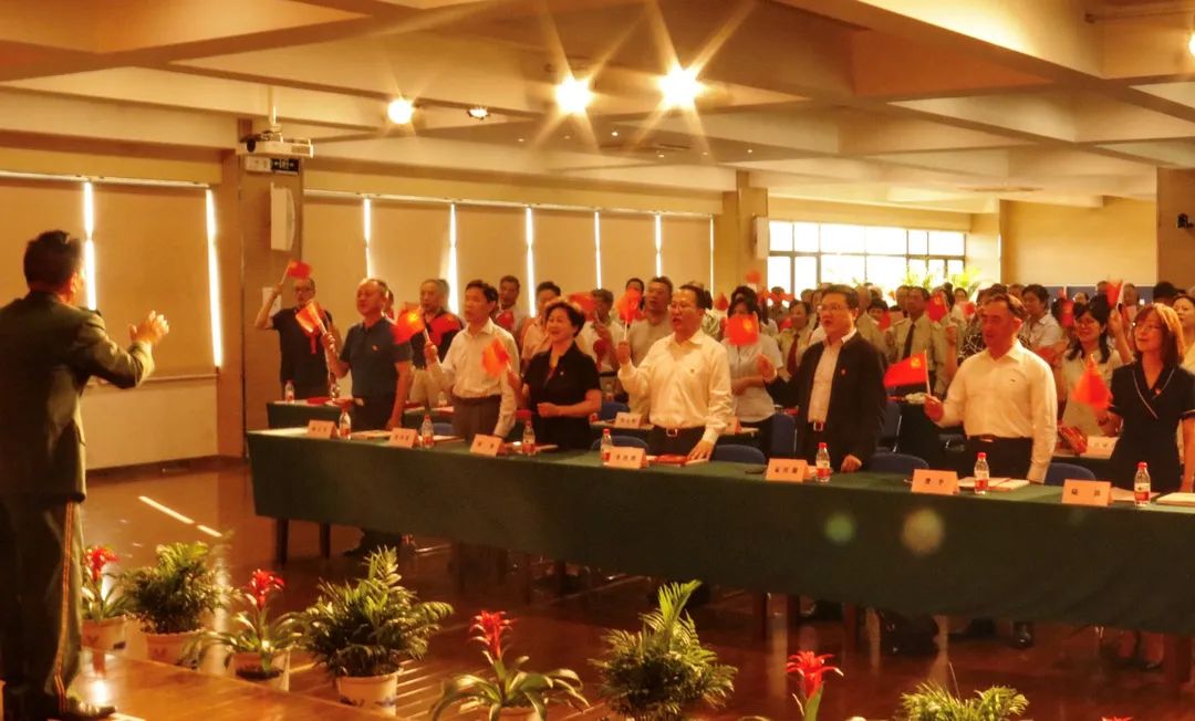 与会领导共同启动“老兵永远跟党走”——闵行区退役军人事务系统庆祝中国共产党成立100周年系列活动暨主题实践展示仪式。军休干部李荣翔带领闵行区退役军人事务局青年党员代表一起重温入党誓词。