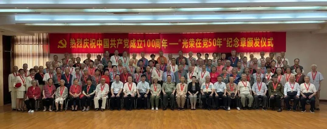 为隆重庆祝中国共产党成立100周年,各区纷纷开展“光荣在党50年”纪念章颁发仪式,向老战士、老党员们表达崇高的敬意。