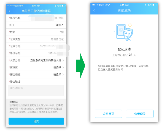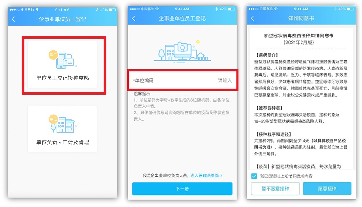 b)愿意登记完成后,可等待区级管理部门根据重点行业优先顺序,陆续分配接种点安排接种。