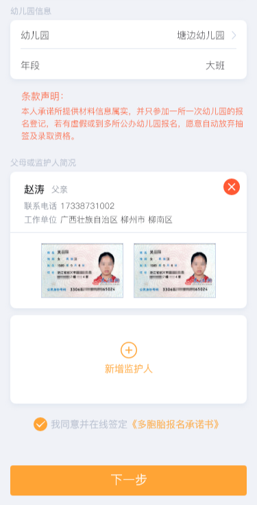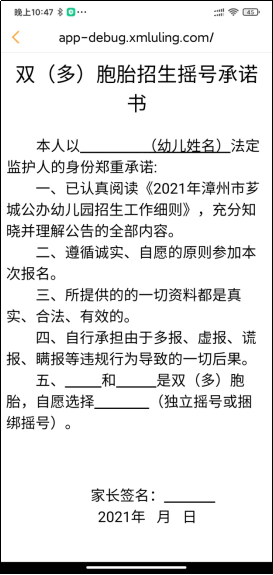 点击【多胞胎报名承诺书】,可查看详细。