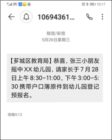 8.幼儿园三审通过后,提交教育部门审核,全部审核通过后将组织进行摇号,摇中后家长可收到录取成功短信提醒。