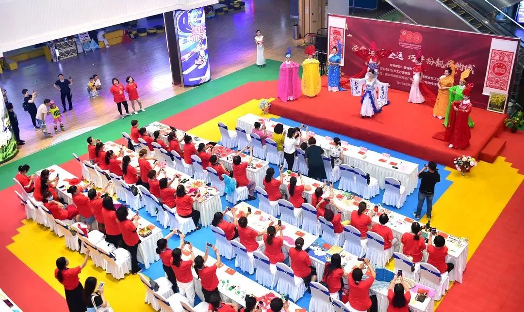 6月25日,西安市妇联、市妇女手工艺联盟共同举办“学党史 迎全运 巧手扮靓我的城”庆祝建党一百周年手工艺展演。手工艺达人们现场展示了烙画、布糊画、农民画、棉絮画、剪纸、彩泥塑、编织、丝网花、丝带绣、面塑、串珠等几十种工艺的爱党爱国主题作品,献礼建党百年。