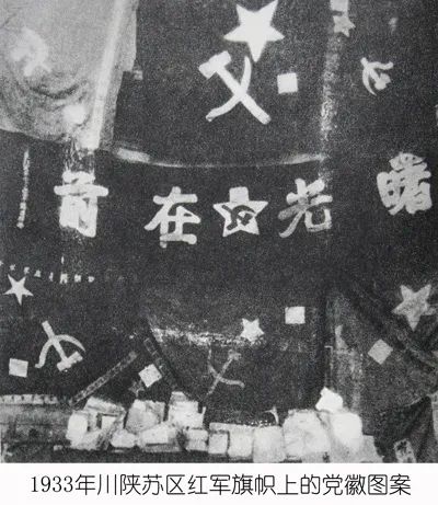 1927年10月15日,中共南方局、广东省委联席会议通过《中共广东省委通告(第14号)——南方局、省委联席会议通过的最近工作纲领》,明确指出:“一律废除青天白日旗,改用红旗,以斧、镰为标志,与国际旗同。”这既是党的领导机关第一次对党的旗帜作出的正式决定,也是对党徽构成要素的第一次明确表述。1933年4月,中共中央决定,把党旗党徽中的“斧头”图案调整成为“锤子”图案。由于战事频繁,这项决定未能全面贯彻执行。此后,在党旗的有关表述与制作使用中,出现“斧头”和“锤头”混用现象。