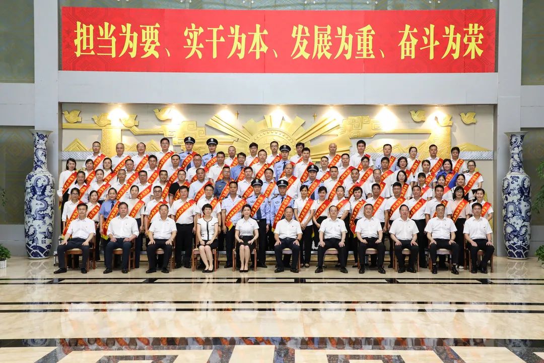 农生文、雷应敏等市领导与受表彰代表合影留念。大会召开前,农生文、雷应敏等市领导亲切会见了受表彰代表,并与大家合影留念。