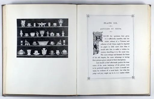 “这些照片的分类全然是传统的:有十张建筑和旅行图片,四张静物照,三张细账式的照片(陶瓷器,玻璃制品和书),两张手工印刷品的复制品,一本古代书籍中的一页,石膏模型的两张照片,一片树叶的印制品和最后一点花边的印刷品。除了类别上的传统性(令人好奇的是,肖像没有被包括其中),这些图片并没有尝试表明区别于已存在的插图实践的独立性,不论是内容上还是图画形式上。摄影已被发明,但仍未被定义。”