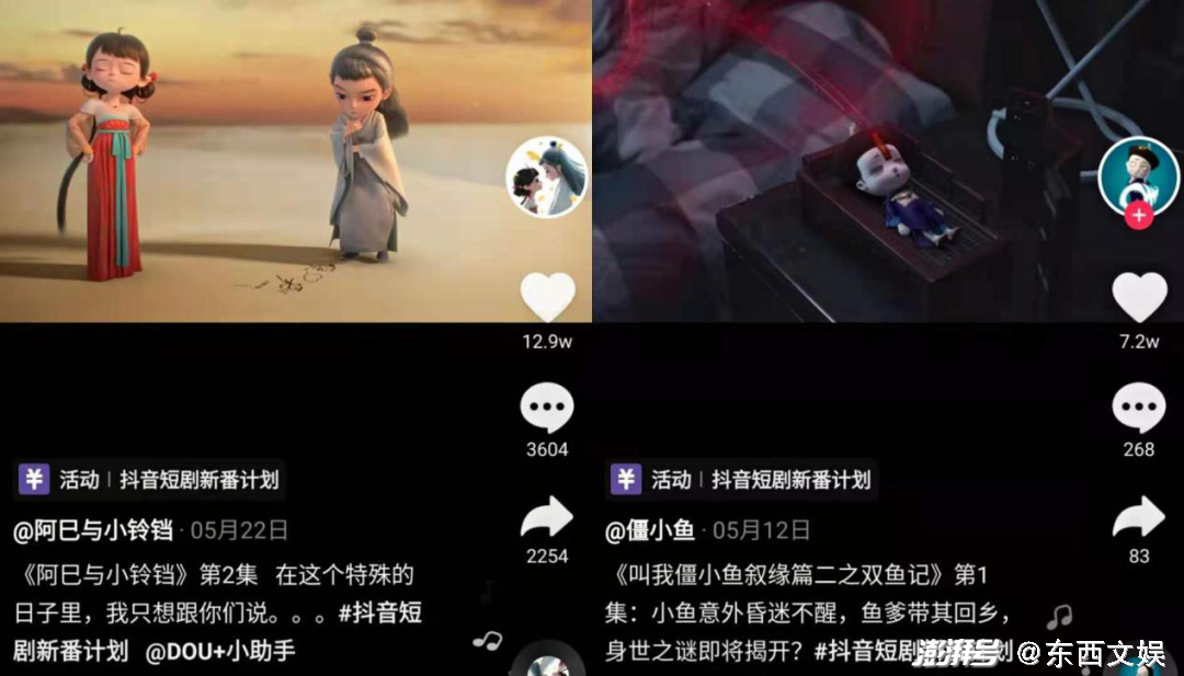 从5月的新番计划榜单来看,TOP作品中,既有改编自番茄小说的古装短剧《千岁爷别乱来》,也有来自壹心娱乐旗下艺人的个人号作品《翻唱小剧场》。此外,《阿巳与小铃铛》《叫我僵小鱼叙缘篇》两部动画片也有入榜。