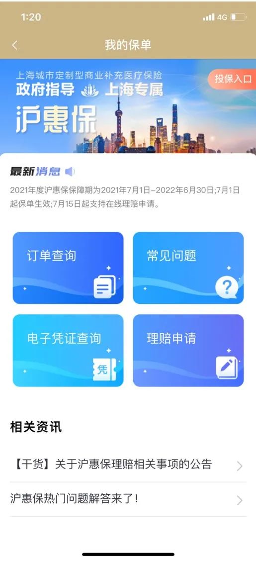 明天起,便可登录“随申办市民云”APP——点击“我频道”——“我的保单”(查看已生效保单)