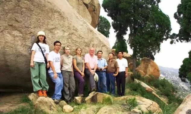 雷德侯担任中德政府联合考察摩崖经刻学术合作项目负责人,图为考察组成员在山东考察现场