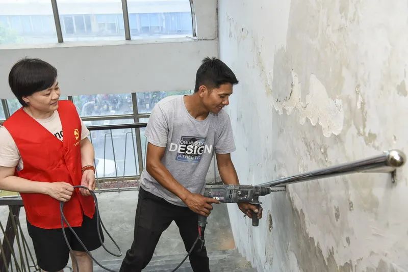 婺城区西市街社区为老年人集中的楼道安装不锈钢扶手婺城