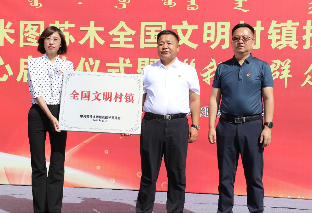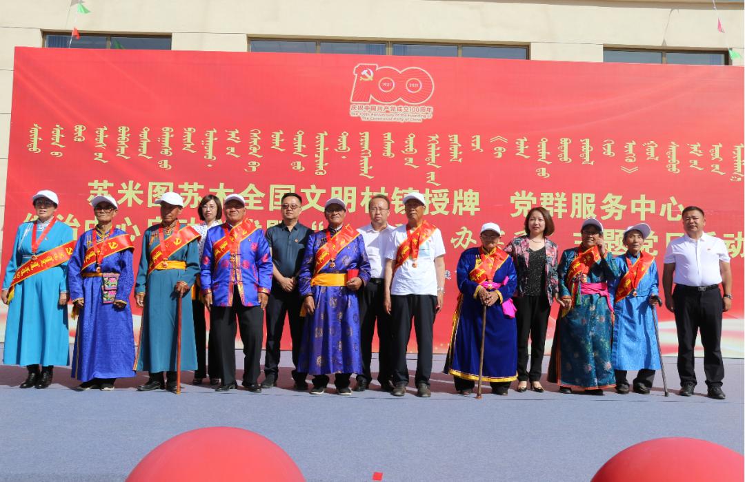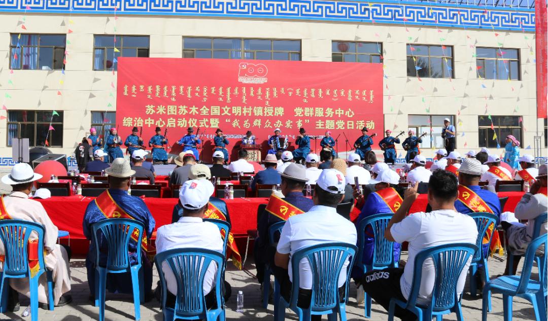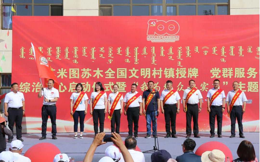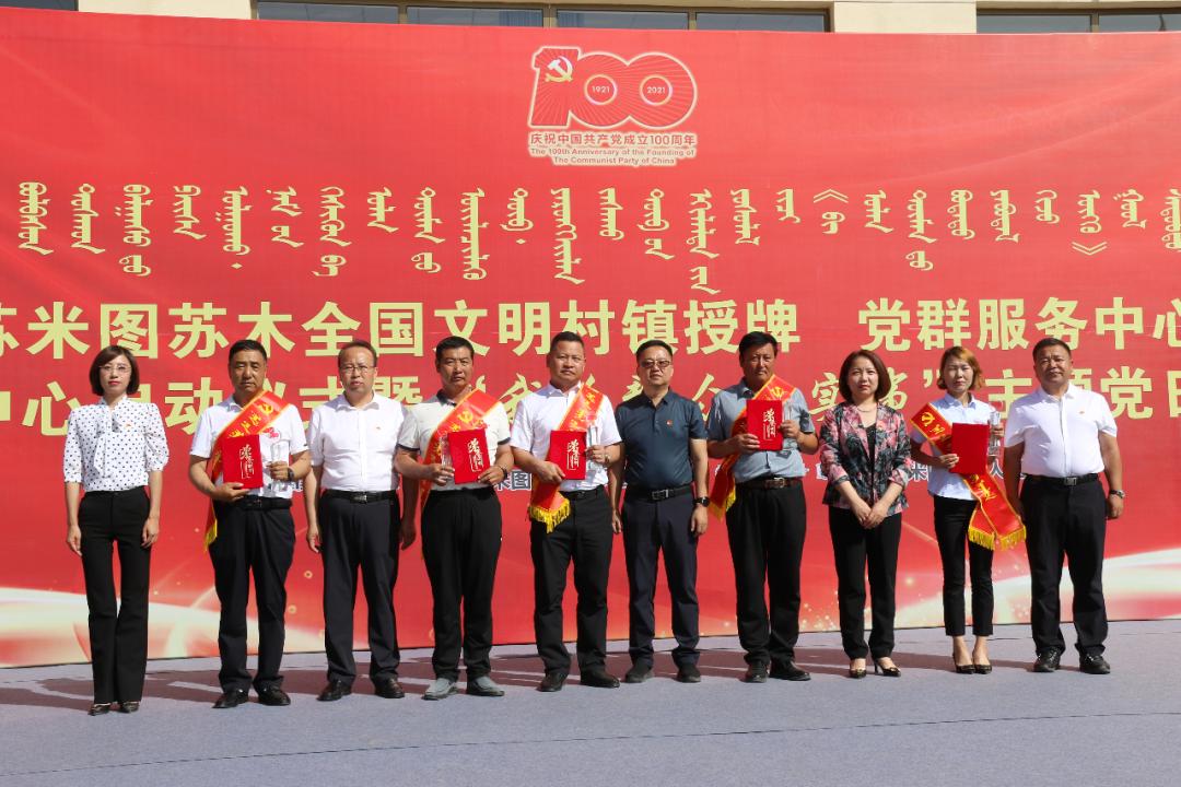 苏米图苏木举办全国文明村镇授牌、党群服务中心和综治中心启动仪式暨“我为群众办实事”主题党日活动
