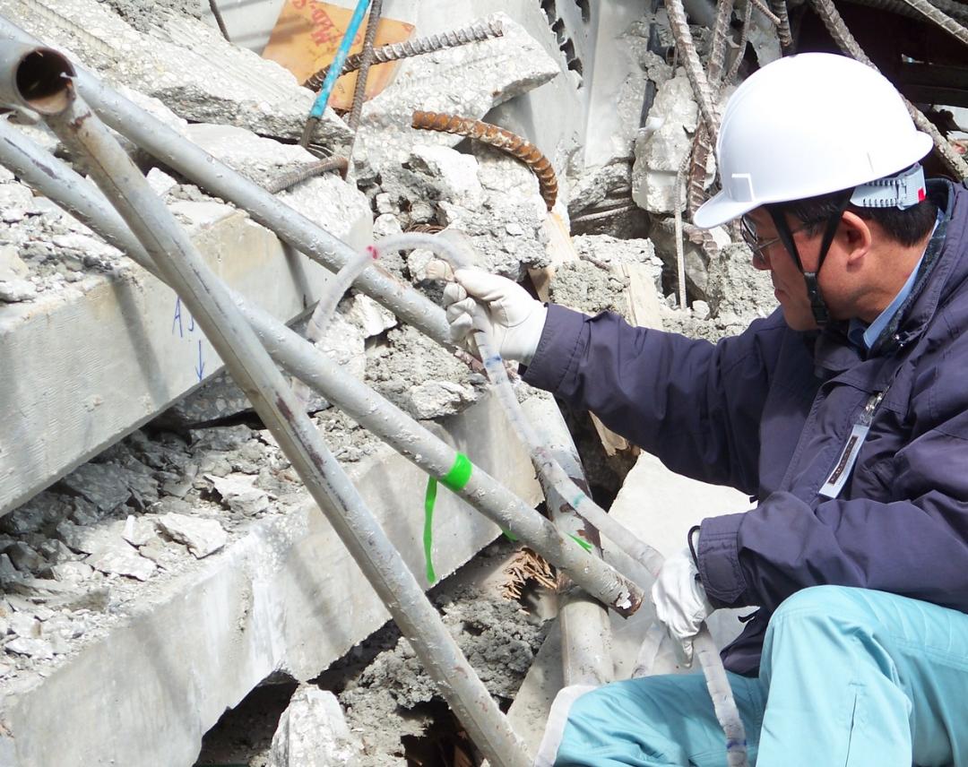 图注:机器人辅助搜索救援中心,佐藤多科罗博士在2007年伯克曼广场II(佛罗里达州杰克逊维尔)停车场坍塌处插入主动瞄准镜相机机器人。Active Scope Camera的机身软管被倾斜的纤毛覆盖。偏心质量电机安装在电缆中,激发振动,使电缆完成上下运动。当电缆向下移动并推动机身时,纤毛尖端会粘在地板上。同时,尖端滑落在地板上,机身向上移动时不会向后移动。通过重复这个动作,电缆可以在狭窄的碎石堆空间中缓慢移动。