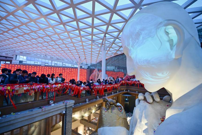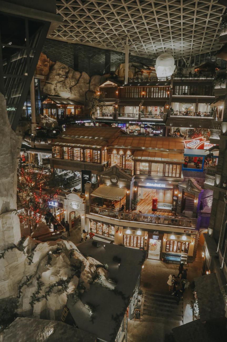 色香俱全的美食、人声鼎沸的夜市、磨砺锤炼的文创等多元业态,“问道”大型沉浸式演出、超巨型牵线木偶、非遗文化市集、各类话剧演出等丰富多彩的活动,吃喝玩乐住在“这有山”这座室内文旅度假小镇融为一体。
