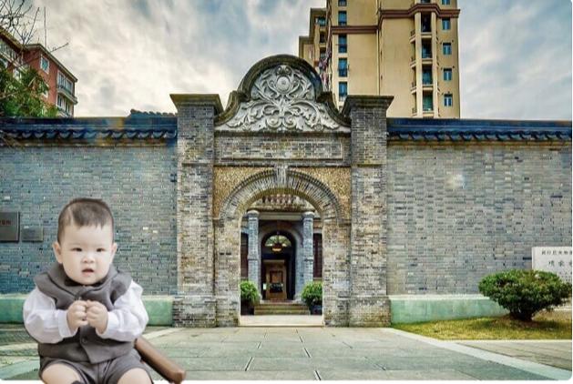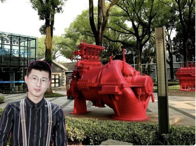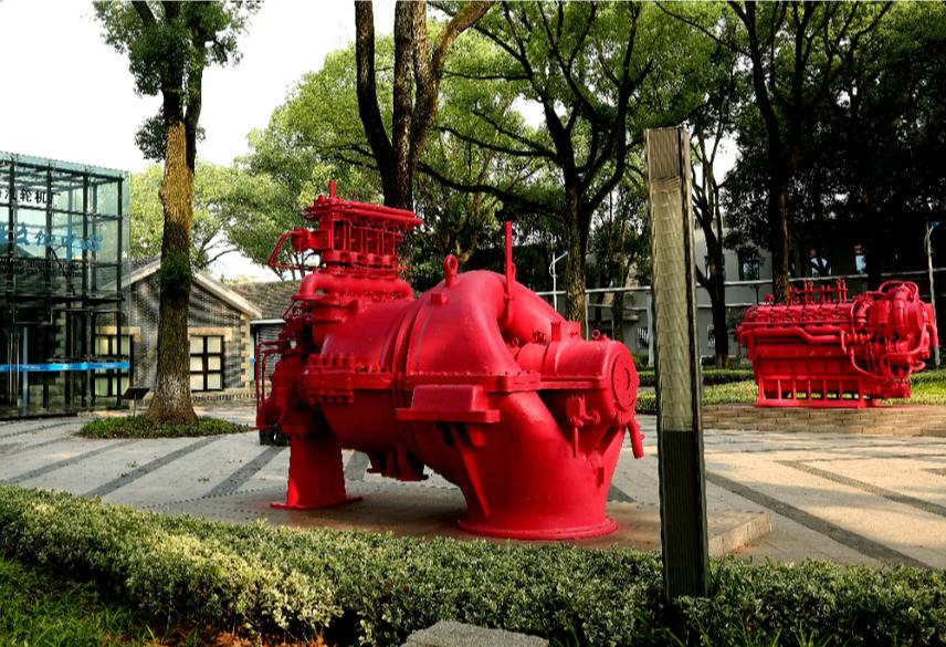 穿着复古小马甲的宝宝,是不是和古老的项宅很搭呢?还有小伙伴来到了上海汽轮机厂,这里有三座很有历史意义的实物雕塑。