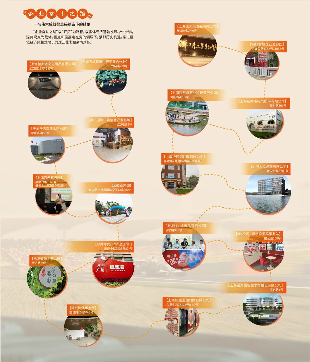 03.企业奋斗之路“企业奋斗之路”以“开拓”为路标,以实体经济蓬勃发展、产业结构深刻蜕变为载体,重点彰显嘉定在党的领导下,紧抓历史机遇,推进区域经济跨越式增长的凌云壮志和豪情满怀。