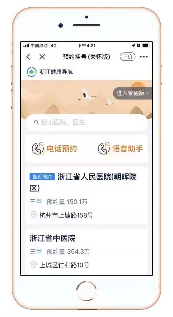 浙江60岁以上老人用手机预约挂号有了专属“关怀版”。