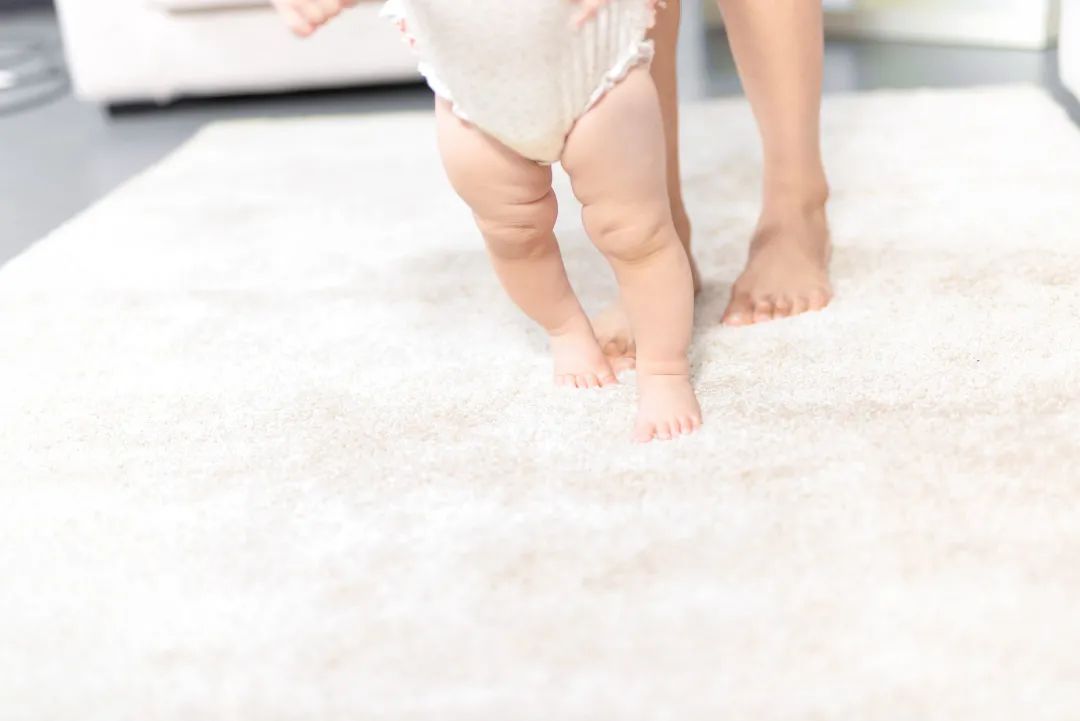 第一阶段是摇晃期。家长可使用材质坚固的围巾或者学步带围住宝宝的腋下,在后背轻轻给予宝宝支撑和保护,引导ta迈开步子,家长切记千万不要拎着宝宝走,不要过多干预宝宝,要让宝宝自己通过脚的负重去掌握方向和步伐,从而达到平衡意识的发育。平衡意识发育得越早,宝宝走路就会越稳。