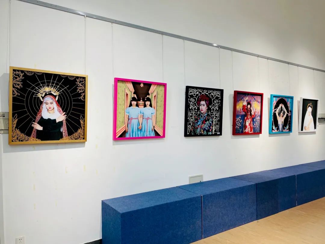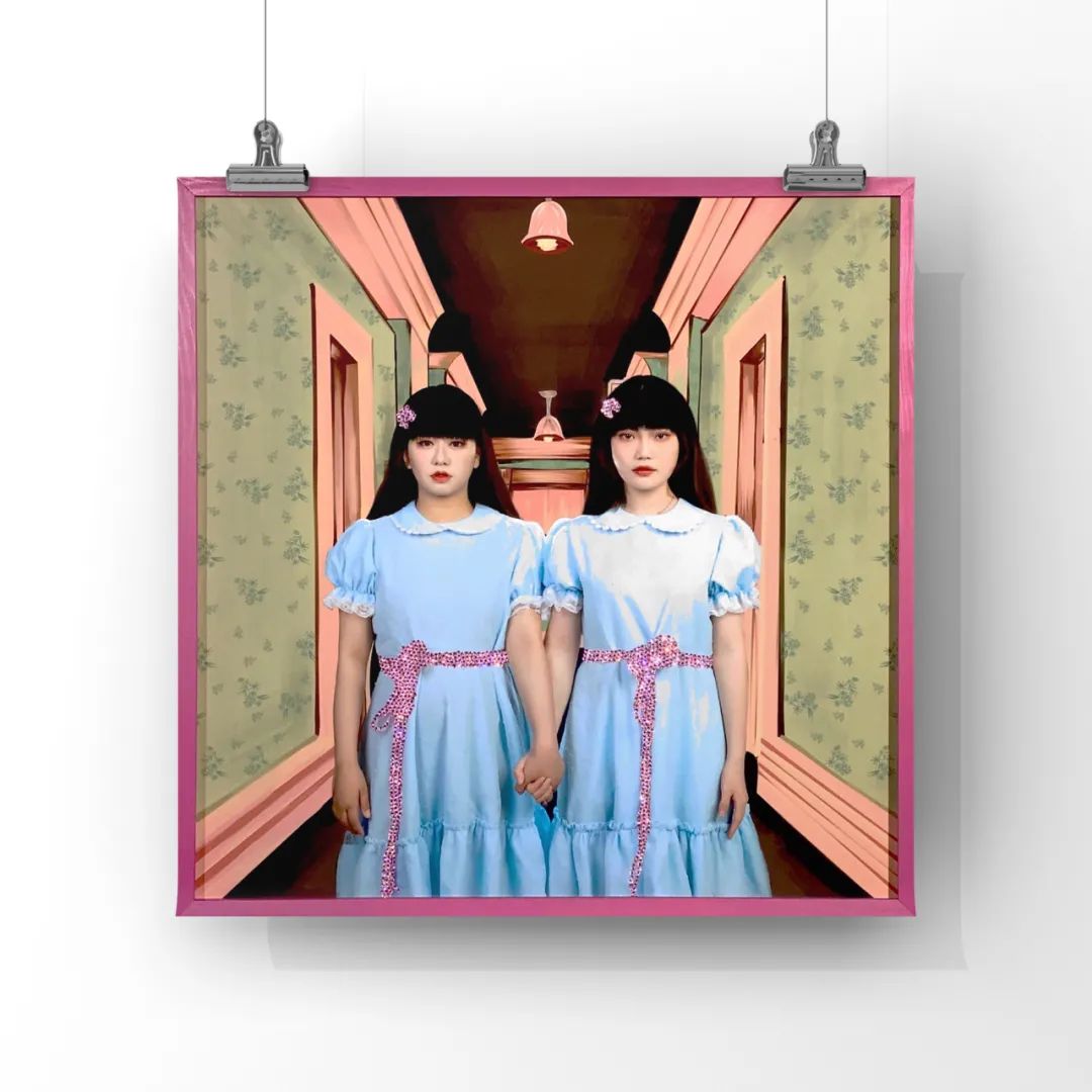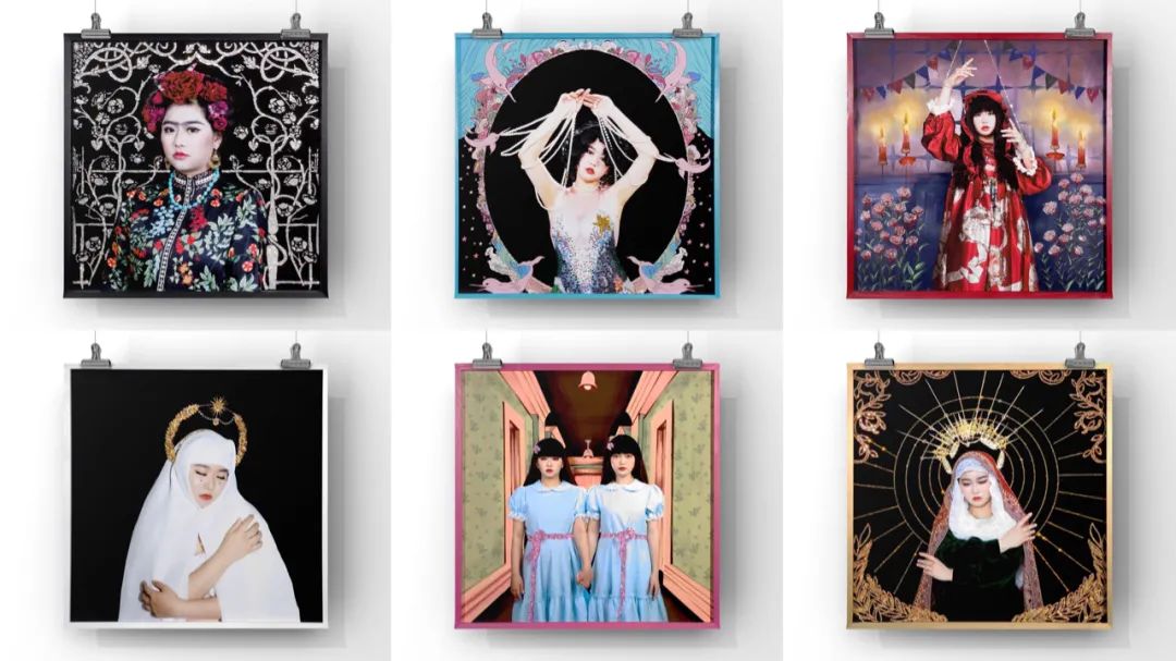 在作品中的具体表现形式为前期拍摄一系列风格化的特定影像,运用数位板、iPad等数码设备进行背景绘制,再结合生活中一些人工合成水晶钻等装饰品在影像中的应用完成粘贴作品。最终将一系列的自拍影像进行提取色彩后,在原木画框上喷漆上色,完成后的画框和影像作品既为补充,又密不可分,延伸了空间的概念,从而增加了作品与观者之间的交互性。