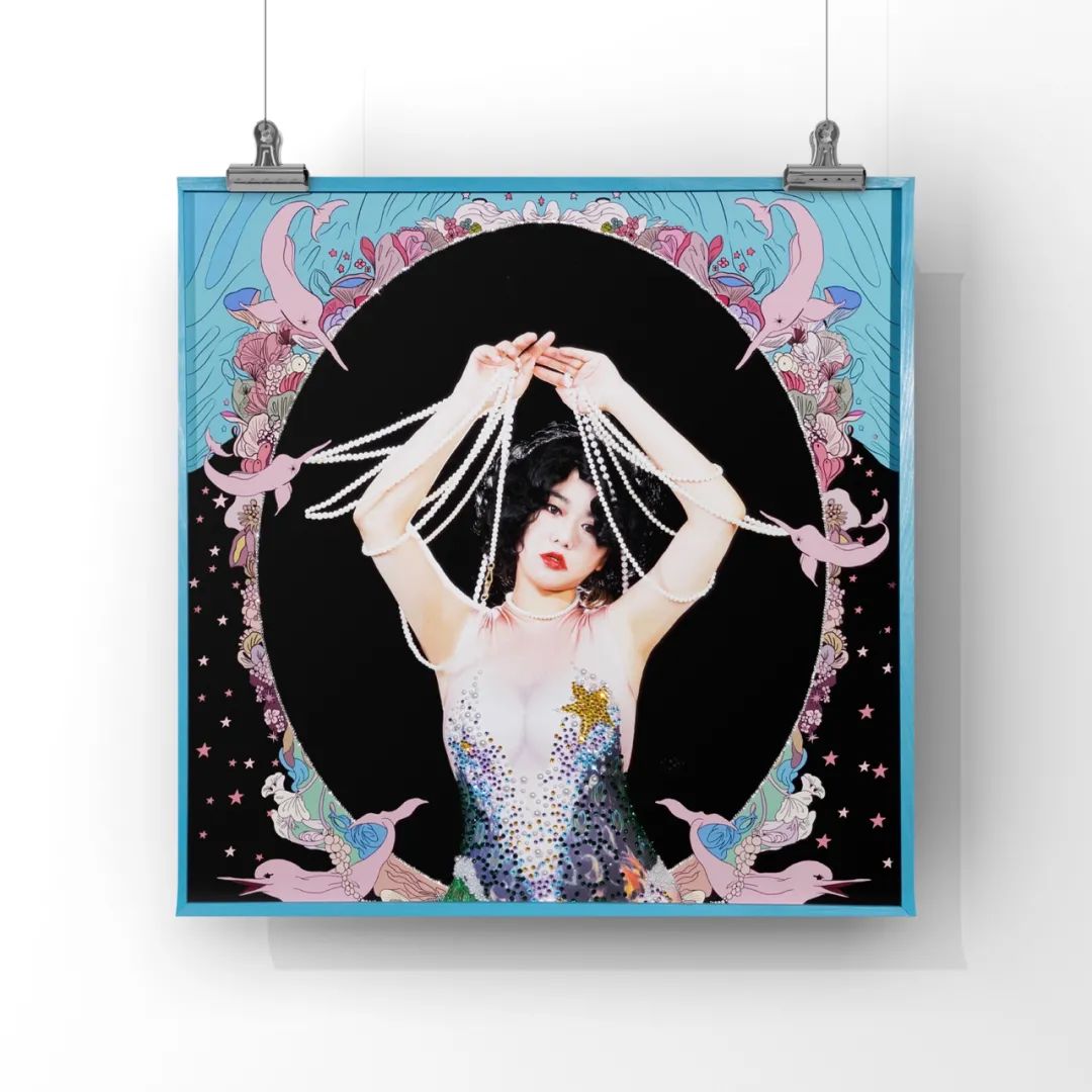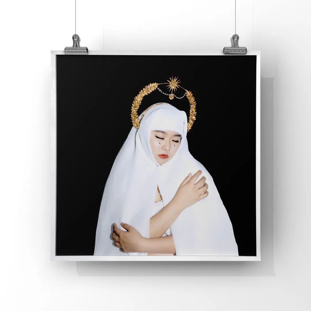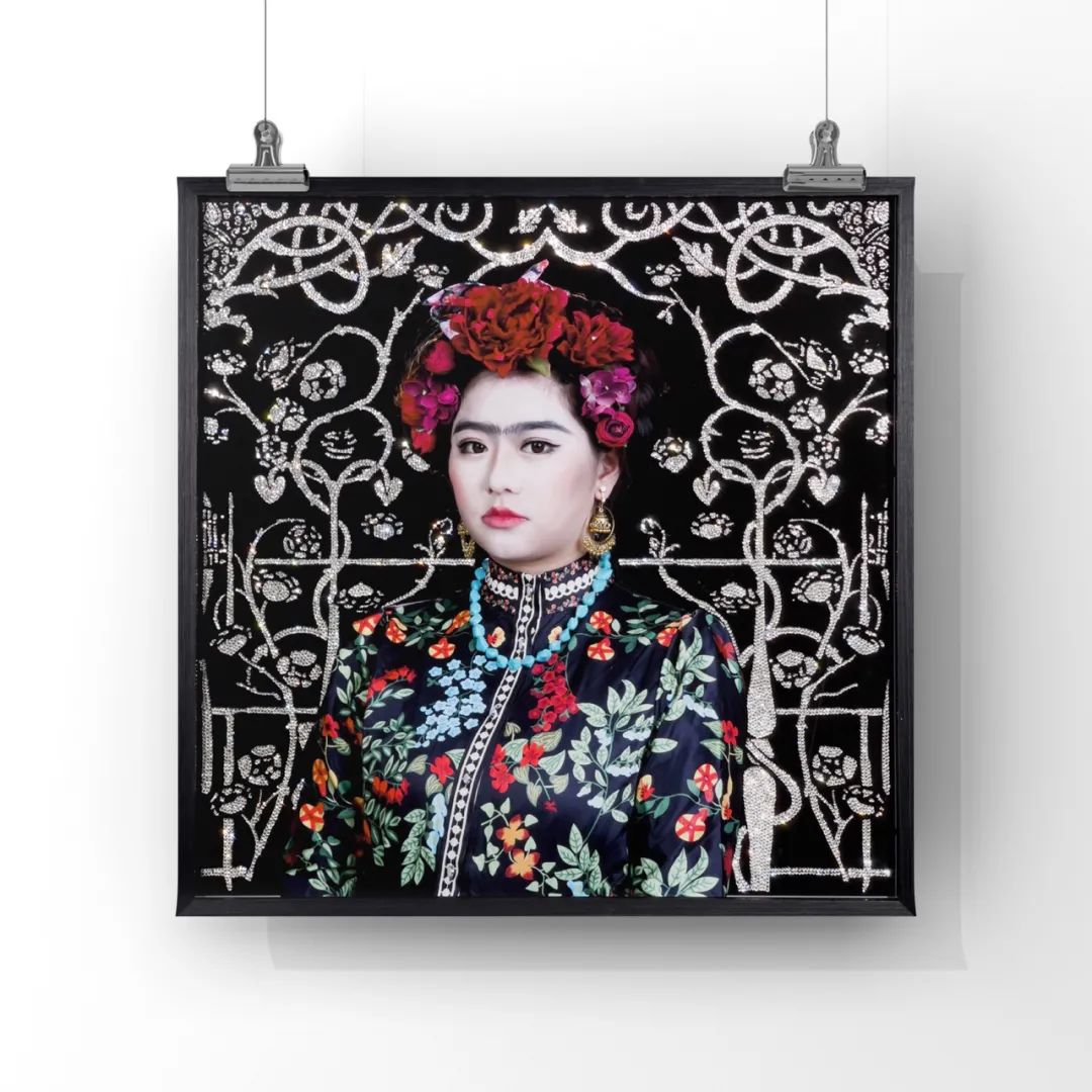 ©付玉本组作品以自拍的方式,扮演不同的女性角色,同时将水晶玻璃钻、金箔、珍珠等女性装饰用的材料镶嵌在影像上,让材料直接介入影像,探索如何利用材料、媒介去拓展和丰富影像的语言和视觉呈现、现实与虚构之间的空间。让原本平面化的影像立体起来,原本暗淡的影像闪耀起来,使它从每一个角度观看都似真似幻、璀璨夺目。