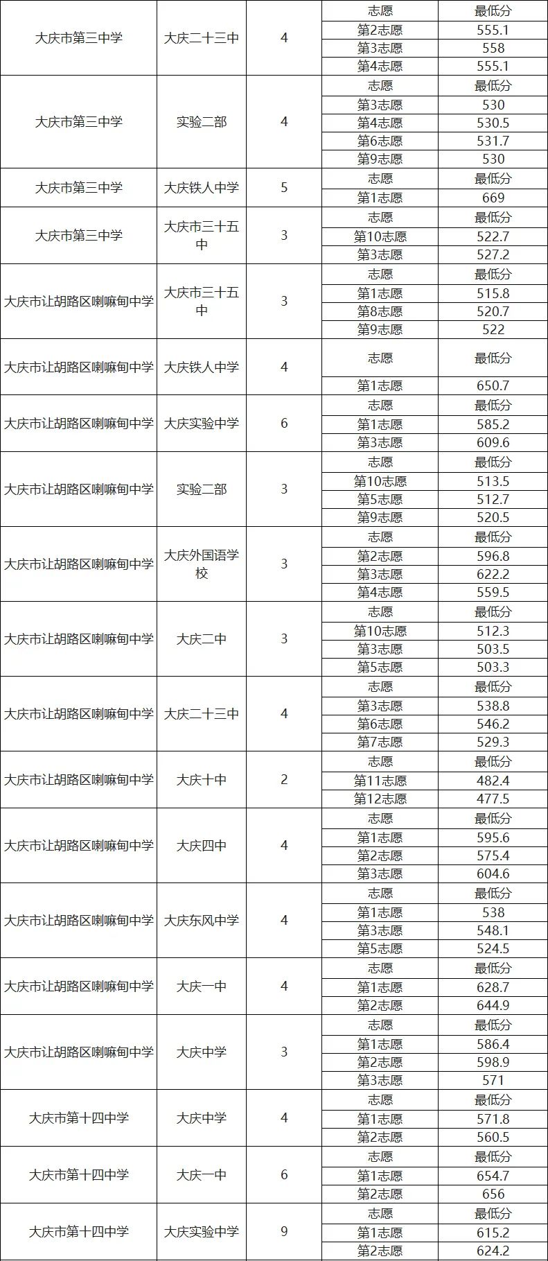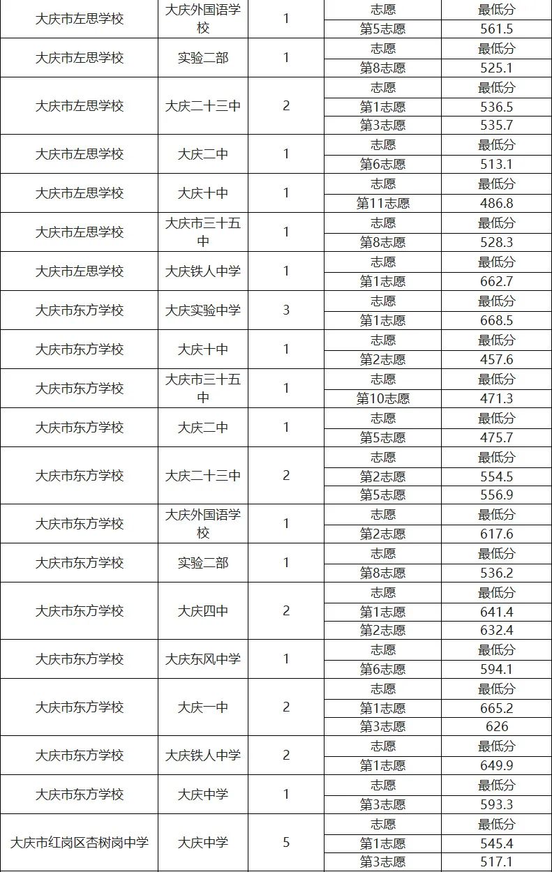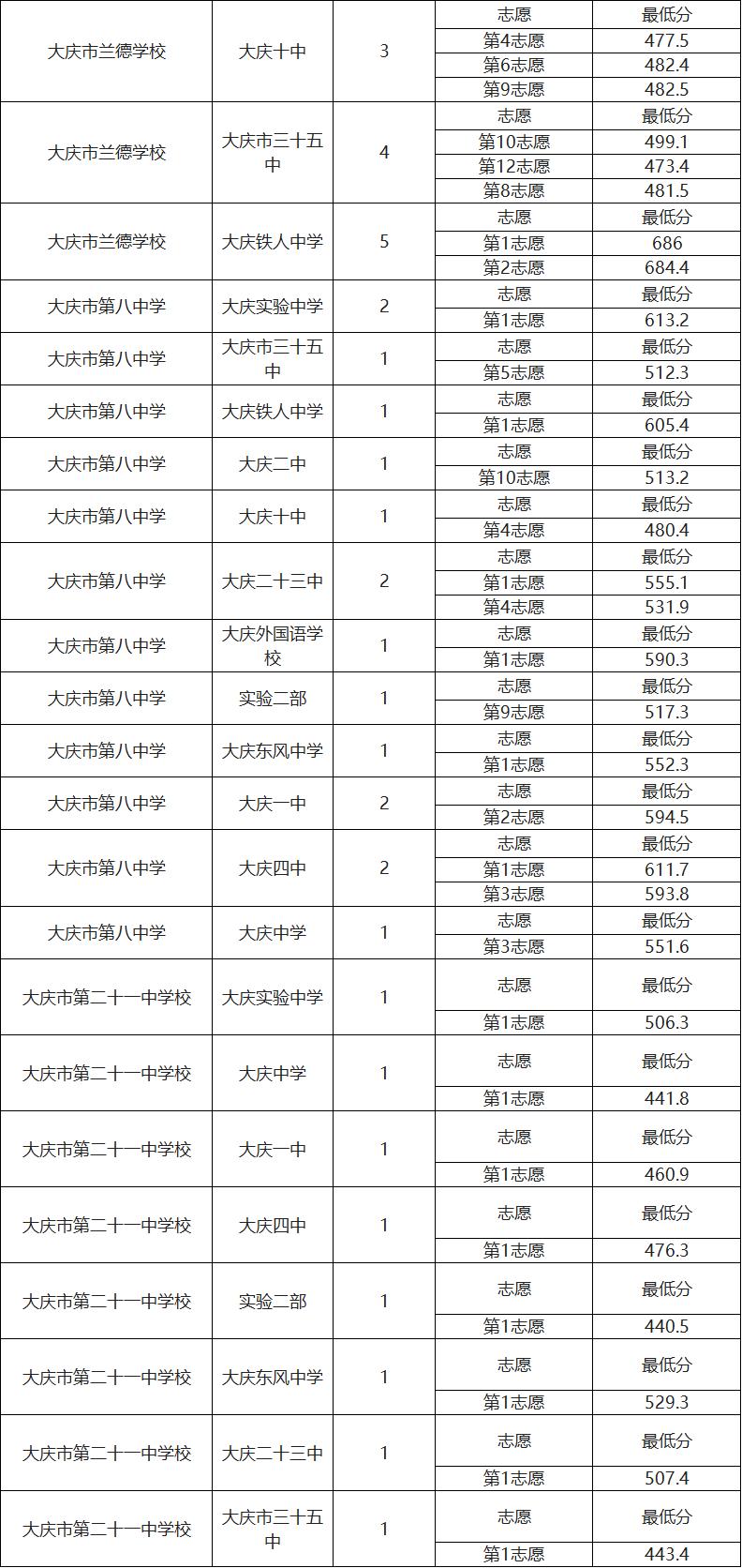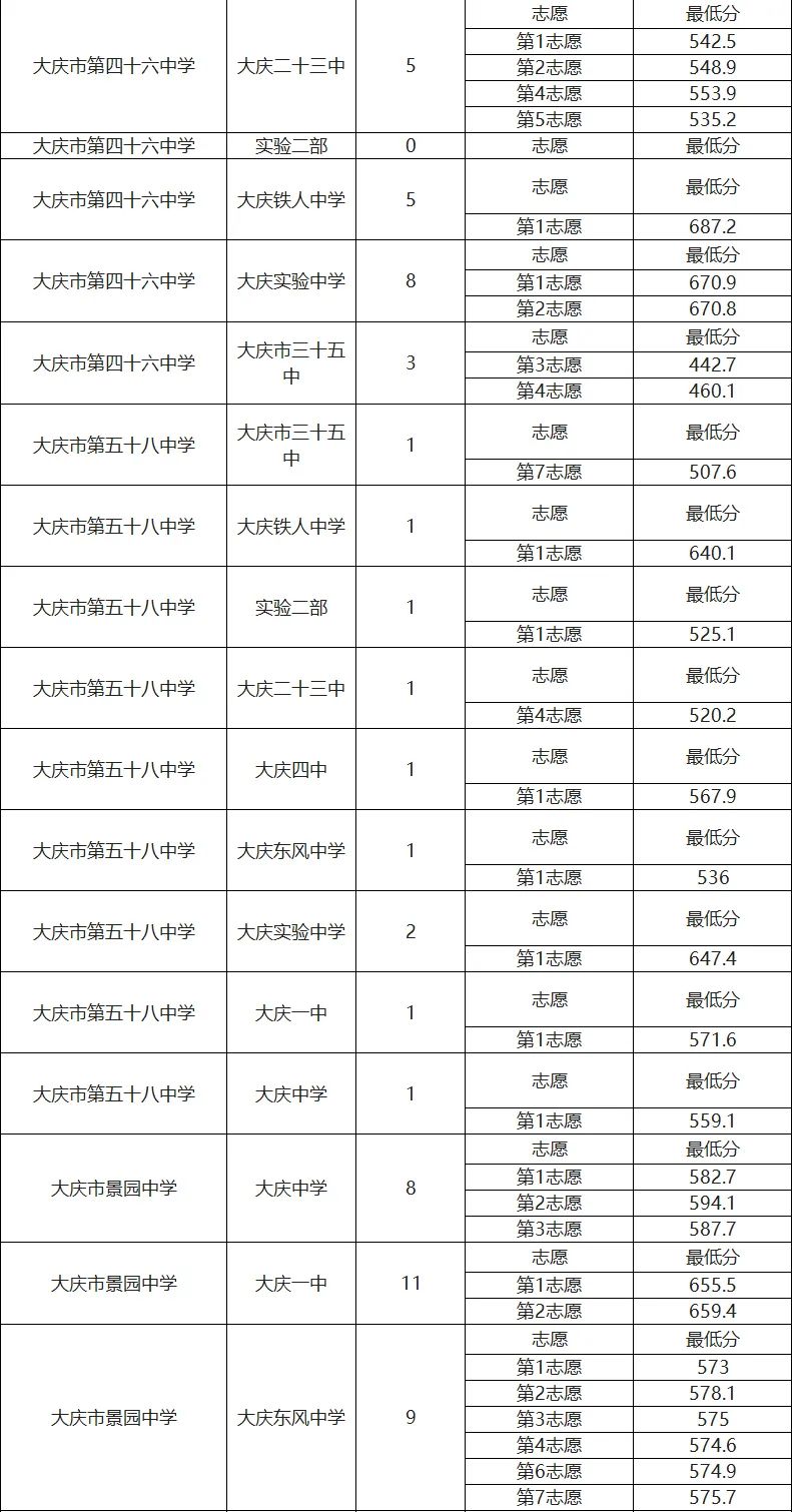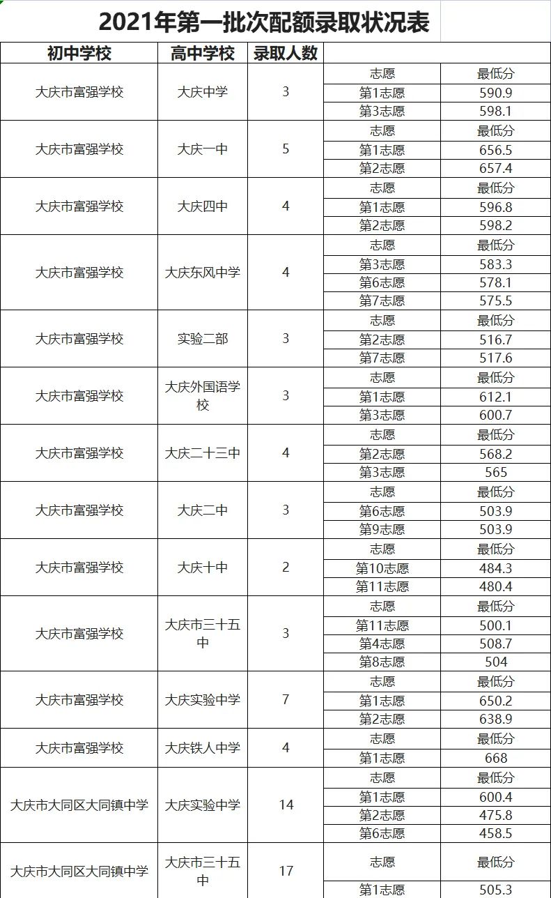 各校配额分数线来了!大庆2021年中考第一批次配额、零批次录取结果公布~