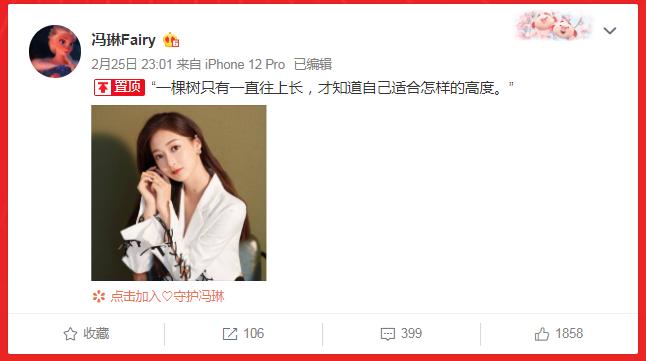 “一棵树只要一直往上长,才知道自己适合怎样的高度。”冯琳,加油~
