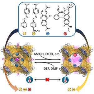 中山大学张杰鹏教授团队设计合成了一例独特结构的MOF材料,发现其二重穿插配位网络中的一套可发生可控可逆的有序–无序结构转变,并可用于调控染料吸附分离选择性。
