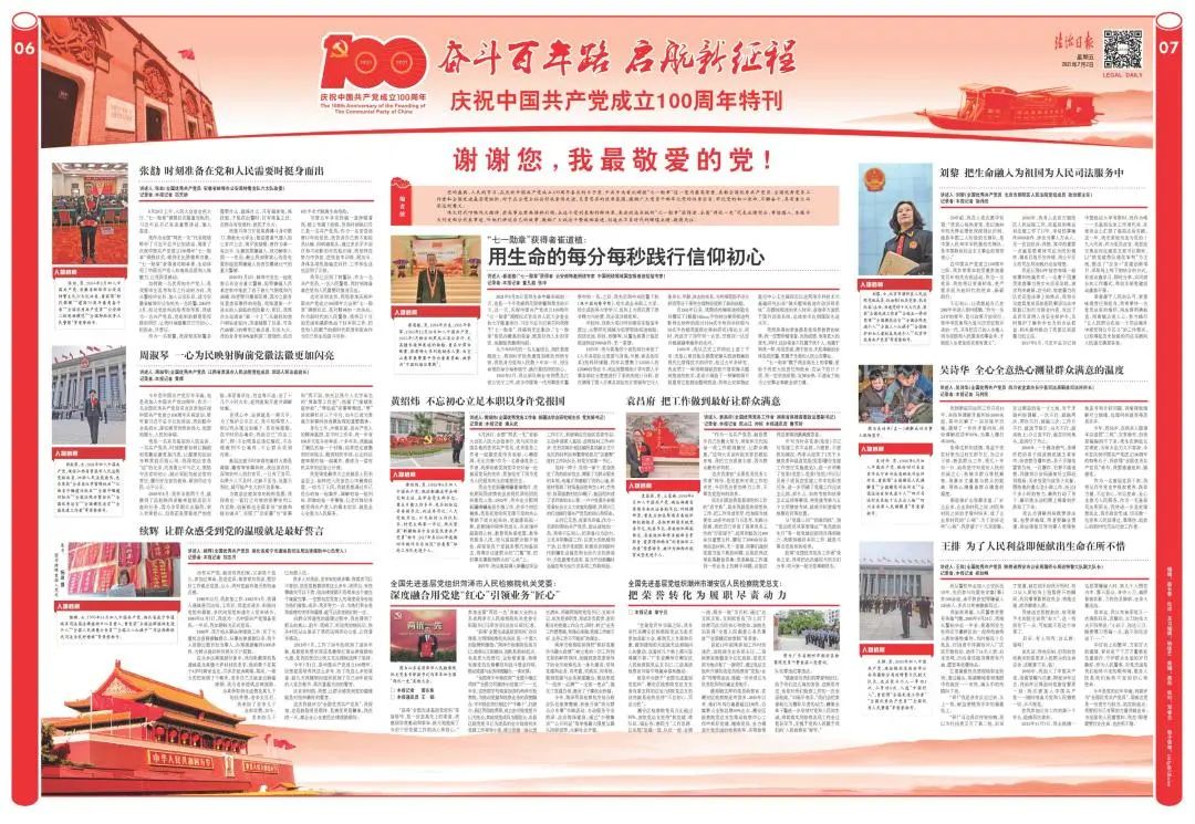 伟大时代呼唤伟大精神,崇高事业需要榜样引领。在这个受到表彰的群体里,来自政法系统的“七一勋章”获得者、全国“两优一先”代表业绩突出、事迹感人,《法治日报》7月2日刊发部分代表事迹,听他们讲述自己的故事,激励广大政法干警砥砺奋进,创造出不负时代的辉煌业绩。