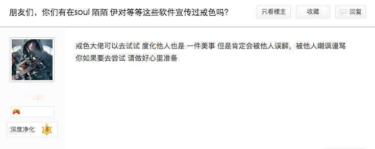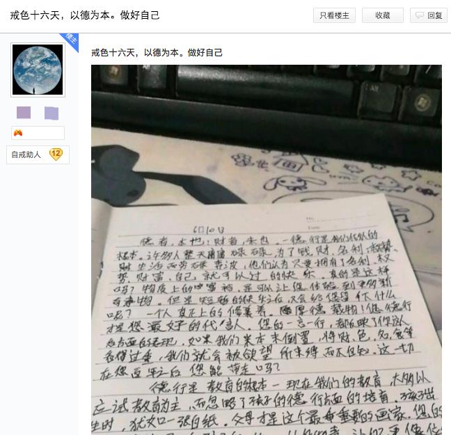 除了这些邪门功夫,戒色吧还有一股“清流”,崇尚以“德”戒色。