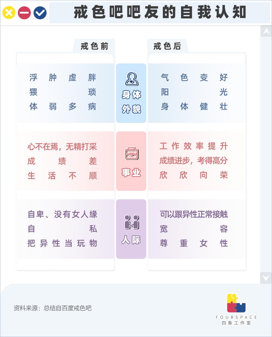 一千个吧友,或许有一千个戒色的理由。以下是吧内常见的一些戒色原因: