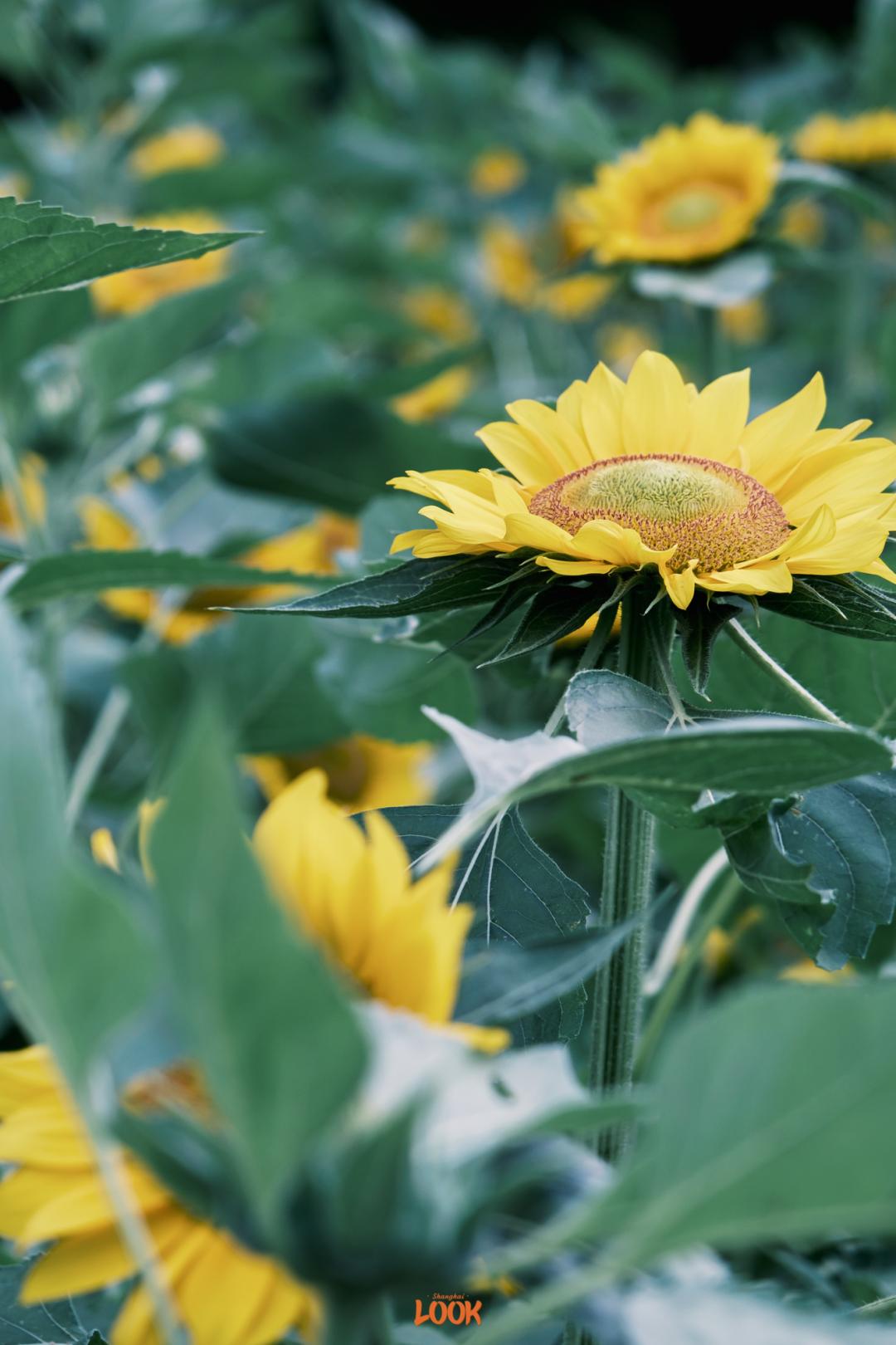 向日葵花海正盛开,象征着朝气的明黄色,尽收眼底。