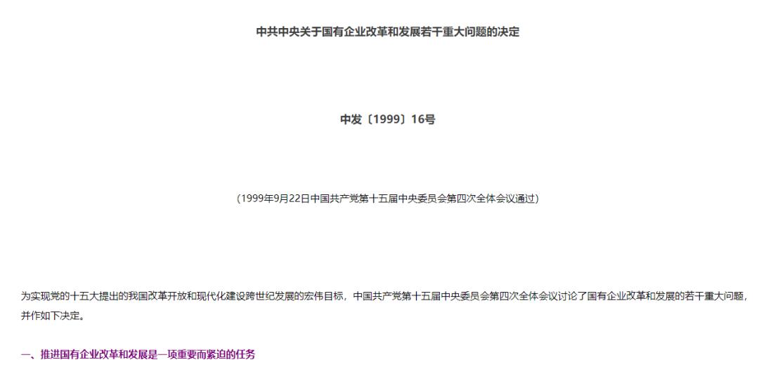 国有企业改革和发展若干重大问题的决定来源:中央党史和文献研究院