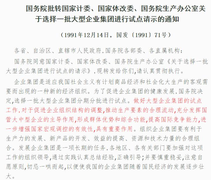推行集团企业试点通知来源:国务院