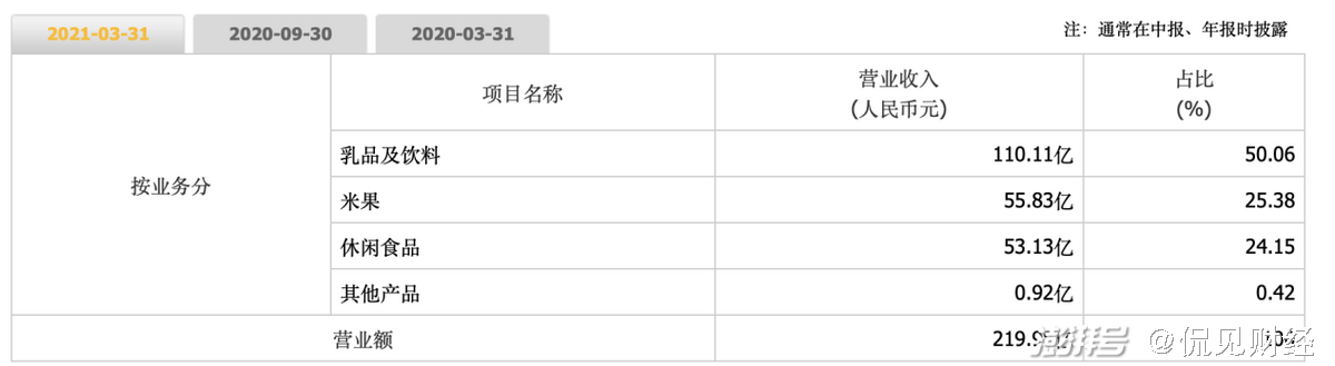 从最新的财报数据来看,旺旺的营收主要在乳品及饮料、米果和休闲食品三大类,乳品及饮料在营收上的占比达到了50.06%,米果在营收上的占比为25.38%,其他休闲食品则为24.15%,乳品及饮料、米果的占比非常高。
