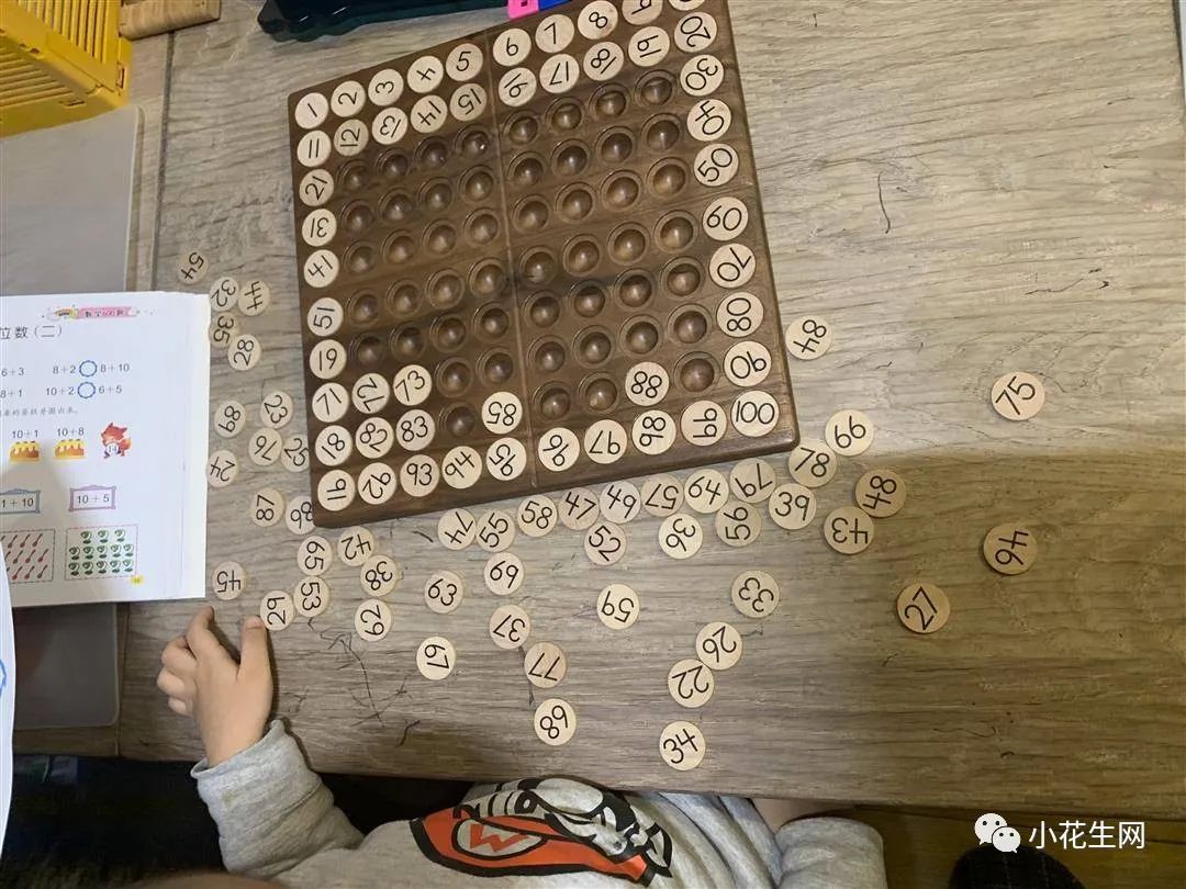 但我老公就非常喜欢百数板,带着娃从分组按顺序,到斜着拼,挑着拼,找规律…… 实在不会的,可以参考陪玩儿文档以及购买配套练习题。