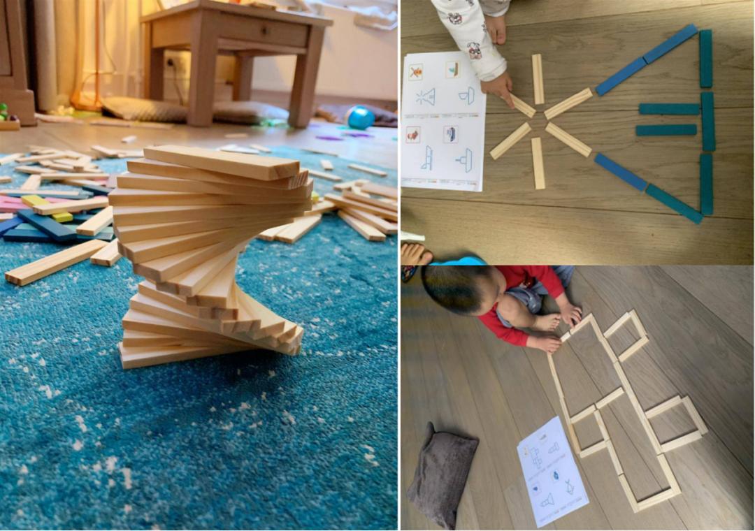 魔法方块:各种拼搭,无限玩儿法。也是我家你拍一上课替代性最强的教具(我们收不到教具,只能找替代品)。