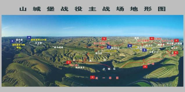 “现在我们所处的位置原称‘瓦沟台’,山城堡战役胜利后群众改称为‘凯旋岭’。”山城堡战役纪念园解说员敬倩告诉记者,当时红十五军团徐海东部就部署在这一带;往南4公里处称“韩山堡”,红四师李天佑部部署在那一带;往东3公里处称“城隍原”,红四军陈再道部、红三十一军肖克部在此部署;西面的山梁称“马掌子山”,红一师陈赓部在那一带部署;西北大约七八公里处称“哨马营”,红二师杨得志部在此部署。“这样就形成了一个口袋状,当时国民党军虽然占领了‘山城堡’这块高地,但实际上是陷入了红军的包围圈。”随着山城堡战役主战场地形图的徐徐展开,关于这场著名战役的历史也从讲解员口中娓娓道来。