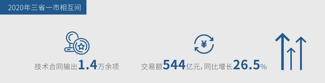 根据《2020长三角区域协同创新指数》,长三角协同创新综合水平自2011年以来年均增速9.3%,在长三角区域资源共享、创新合作、成果共用、产业联动、环境支撑五大方面取得长足发展。至2019年,长三角城市间专利转移数从不足千次跃迁为近2万次,科研合作网络密度增幅超八成,发明专利申请量、科技论文合作量均翻了4倍多。