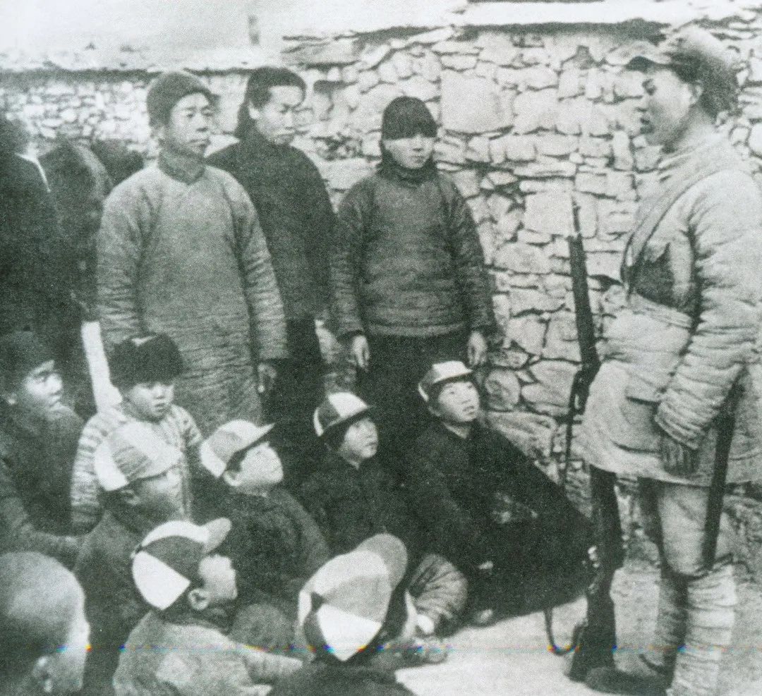 葛振林向群众介绍血战狼牙山跳崖情况电影《狼牙山五壮士》同年上映