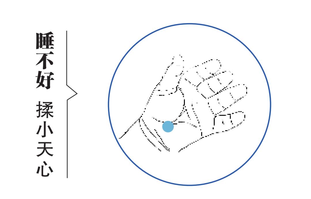 摩腹的时候,用手掌或者四指按压着按摩脐周3分钟,顺时针摩腹为泻法,适合因为热气导致的实证便秘;逆时针摩腹是补法,适合中气不足(即肠动力不足)导致的虚症便秘。4. 睡不好:揉小天心