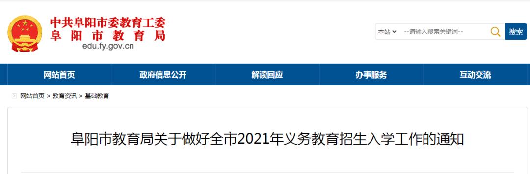 原标题:《事关中小学招生入学!阜阳市教育局刚刚发布!》
