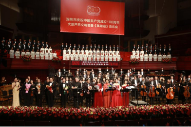 这部作品选择中国共产党成立100年来各个时期共14位代表人物,用他们自己的诗词散文或日常话语为脚本,以交响乐的宏大框架,衬托出由独唱、重唱、合唱、朗诵为表现形式的14首各自独立又逻辑关联的声乐/朗诵段落,成就了一场气吞山河的庆典音乐会。在全国各地庆祝建党百年的各类文艺演出活动中,深圳这一场,显然具有独特的鲜明风格。