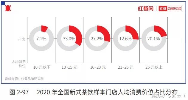 另一方面,《中国餐饮品类和品牌发展报告2021》数据还显示,10~15元、16~20元等中端消费的新茶饮门店的占比,要高于高端、低端茶饮。