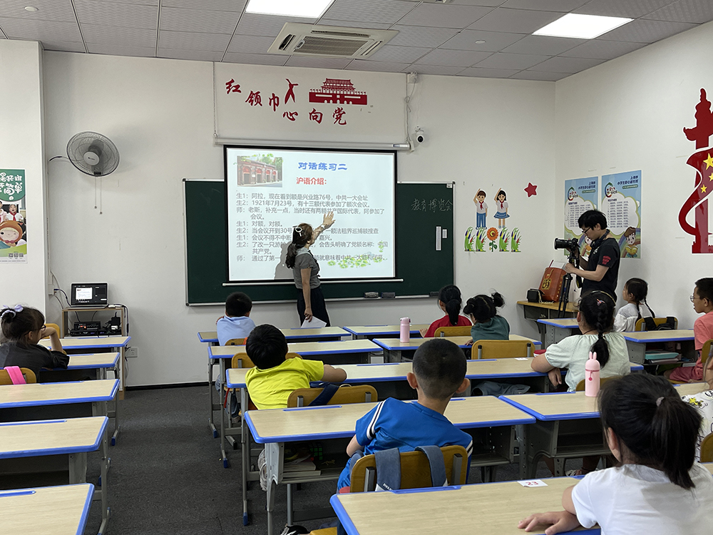 参加爱心暑托班的三年级学生小陈说:“我能听懂上海话,但是我在家里都是讲普通话。‘沪语小达人’的课,让我能用上海话讲上海红色故事,特别有意义。”
