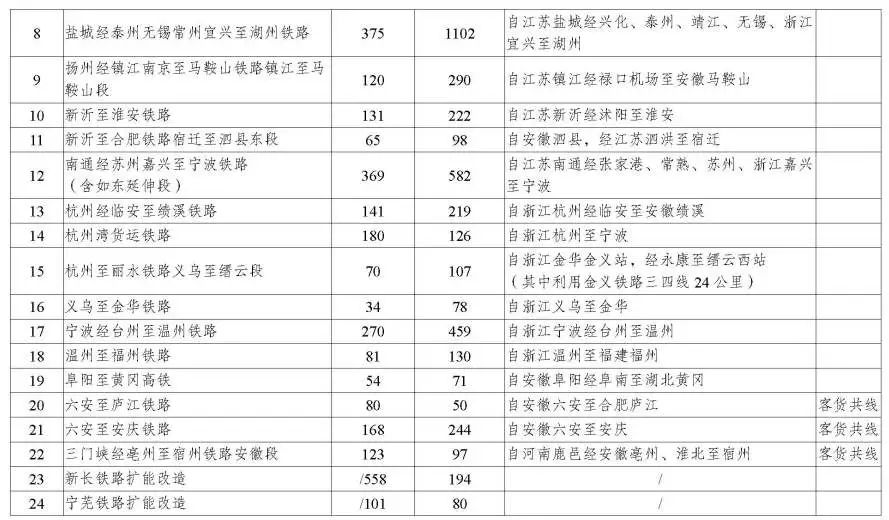 全面拓展提升普速铁路网络。进一步完善普速铁路设施布局, 加快填补路网空白,推进瓶颈路段、卡脖子路段扩能改造,鼓励升级改造既有普速铁路开行动车组,强化集装箱、重载等运输网络,打通以铁路为骨干的多式联运最后一公里,推动普速铁路设施能力和基础服务广泛覆盖。加快建设衢州至宁德、宁波至金华等铁路,规划建设三门峡至亳州至宿州、杭州湾货运铁路等项目。结合运输需求和既有线能力等,研究实施新沂至长兴、南京至芜湖等铁路扩能改造。积极推进铁路专用线建设,推动长江干线和沿海港口铁水联运设施联通,全面实现铁路干线与重要港口、大型工矿企业、物流园区等高效衔接。积极开行开好沿江货运班列, 探索沿江等有条件的主要运输通道推行客货分线及双层集装箱通道建设。