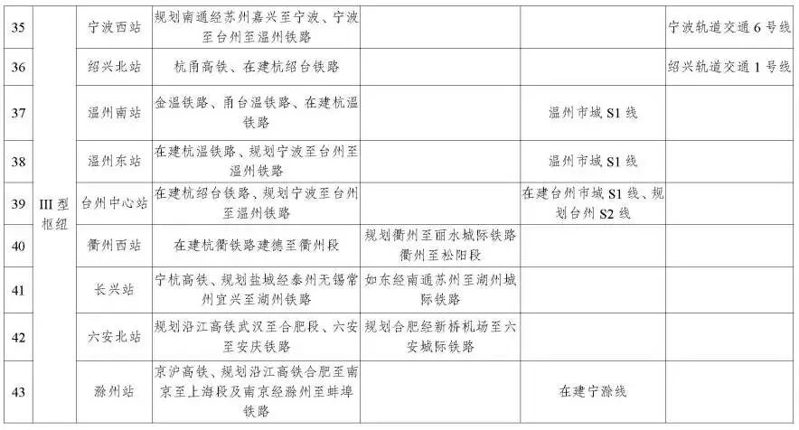 III 型枢纽。以地级市铁路客站和中心城市重要公交场站为重点,高效衔接干线铁路、城际铁路、市域(郊)铁路、城市轨道交通中的“两网”,力促两种方式间行走 2 分钟内可完成换乘。推动南通站、温州南站、六安北站等枢纽建设,探索推进旅客接续换乘比重较高的不同轨道交通方式直通运营,支持不同轨道交通方式在不同层级枢纽上多点衔接换乘。强化枢纽与公交、慢行、停车系统接驳,提高集疏运能力和水平。